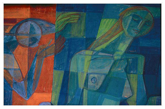 1959, Freskobemalung der Weberhaus-Südseite, Vertreibungsfries, Detail